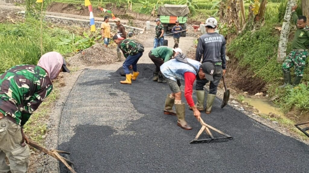 Pengerjaan pengaspalan hotmix tersebut dilakukan oleh anggota Satgas TMMD bersama masyarakat setempat. Dengan semangat gotong royong, TNI dan warga bahu-membahu menyelesaikan pembangunan jalan agar dapat segera dimanfaatkan oleh masyarakat.