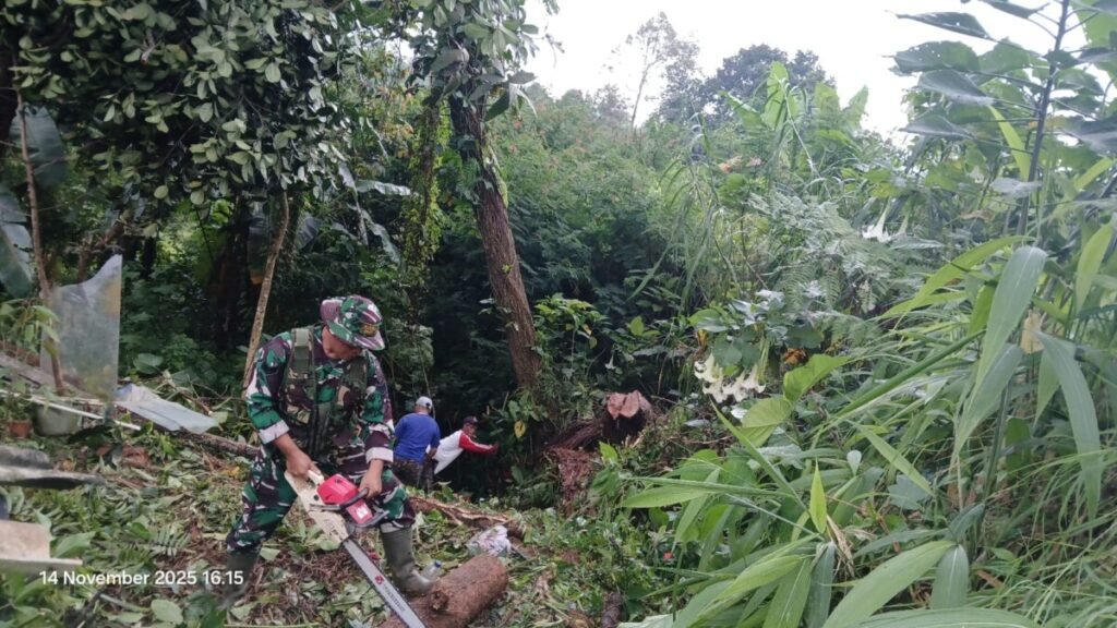 Sukabumi || Hujan deras disertai angin kencang yang melanda wilayah Kecamatan Kadudampit pada pukul 13.20 WIB menyebabkan sebuah rumah milik warga, Bapak Wahyu, di Kampung Tarikolot RT 04 RW 02, Desa Sukamaju, tertimpa pohon tumbang pada bagian dapur, Jumat (14/11/2025).