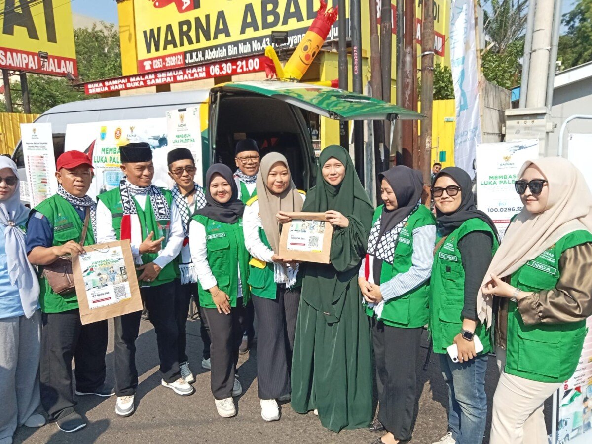 Terlihat para amil Baznas berkeliling di area CFD dengan penuh semangat dan keikhlasan, menyerukan ajakan berdonasi untuk Palestina.