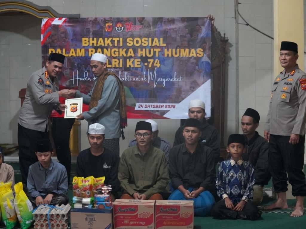 Kegiatan Bhakti Sosial ini diisi dengan penyerahan santunan berupa sembako dan tali asih kepada para santri. Sebanyak 30 santri menerima langsung bantuan tersebut sebagai bentuk kepedulian dan dukungan Polda Jawa Barat terhadap dunia pendidikan keagamaan, khususnya bagi para santri yang tengah menimba ilmu di pondok pesantren.