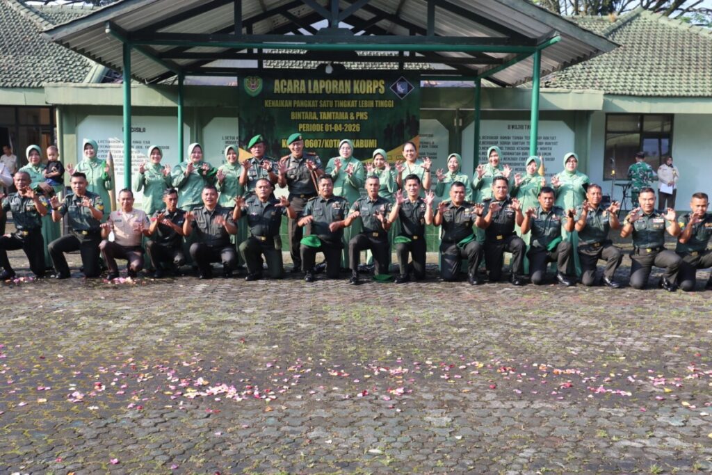 Sebanyak 29 personel Kodim 0607/Kota Sukabumi menerima kenaikan pangkat satu tingkat lebih tinggi, terdiri dari 25 Bintara, 2 Tamtama, dan 2 ASN. Kenaikan pangkat tersebut merupakan bentuk apresiasi dari institusi atas kinerja dan loyalitas yang telah ditunjukkan dalam pelaksanaan tugas.