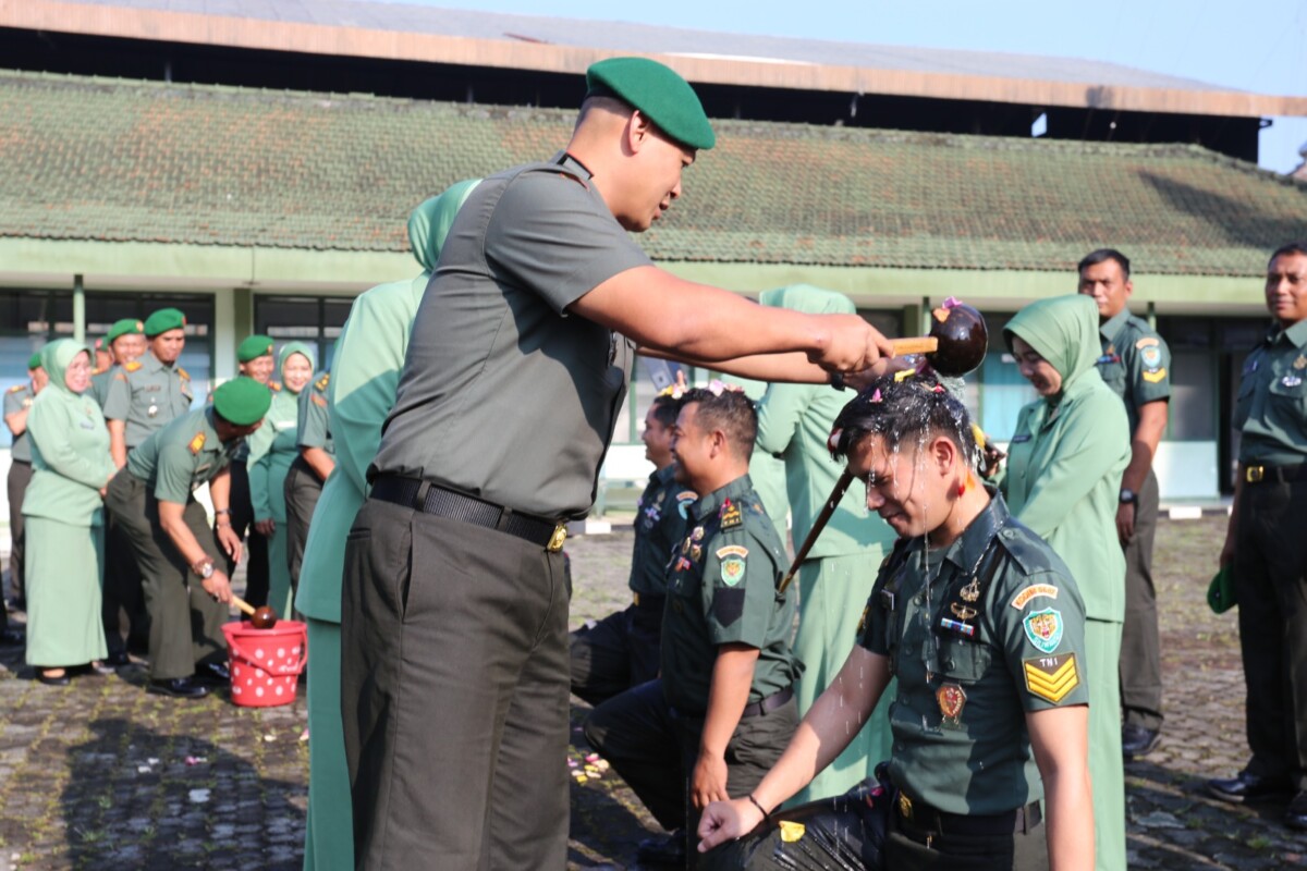 Usai prosesi penyematan tanda pangkat, kegiatan dilanjutkan dengan tradisi siraman air kembang oleh Dandim kepada seluruh personel yang naik pangkat. Tradisi ini memiliki makna mendalam sebagai simbol pembersihan diri, rasa syukur, serta harapan agar para prajurit semakin bijak, profesional, dan bertanggung jawab dalam mengemban amanah baru.