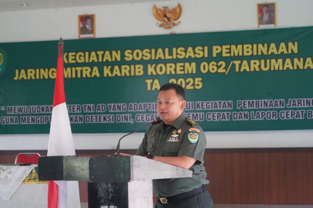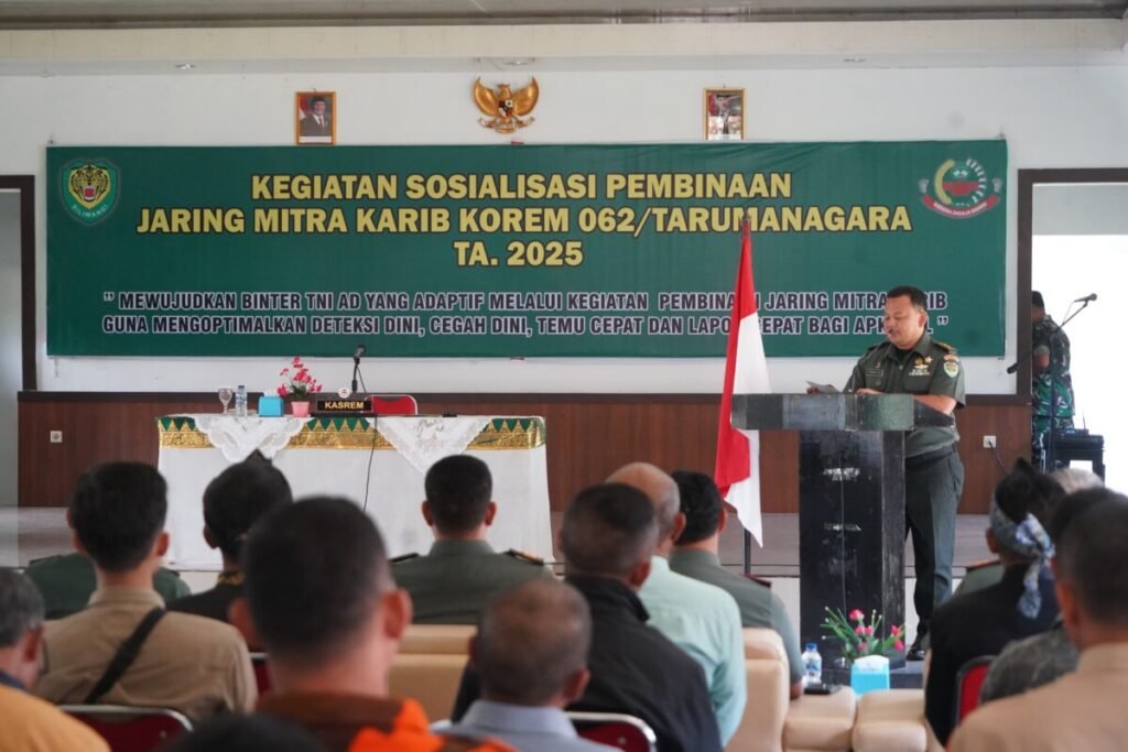 Kasrem 062/Tn Pimpin Sosialisasi Pembinaan Jaring Mitra Karib Korem 062/Tn TA 2025