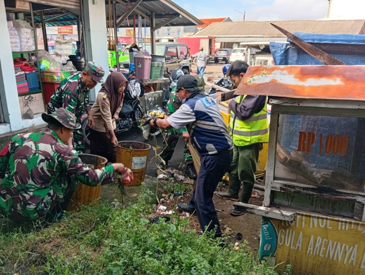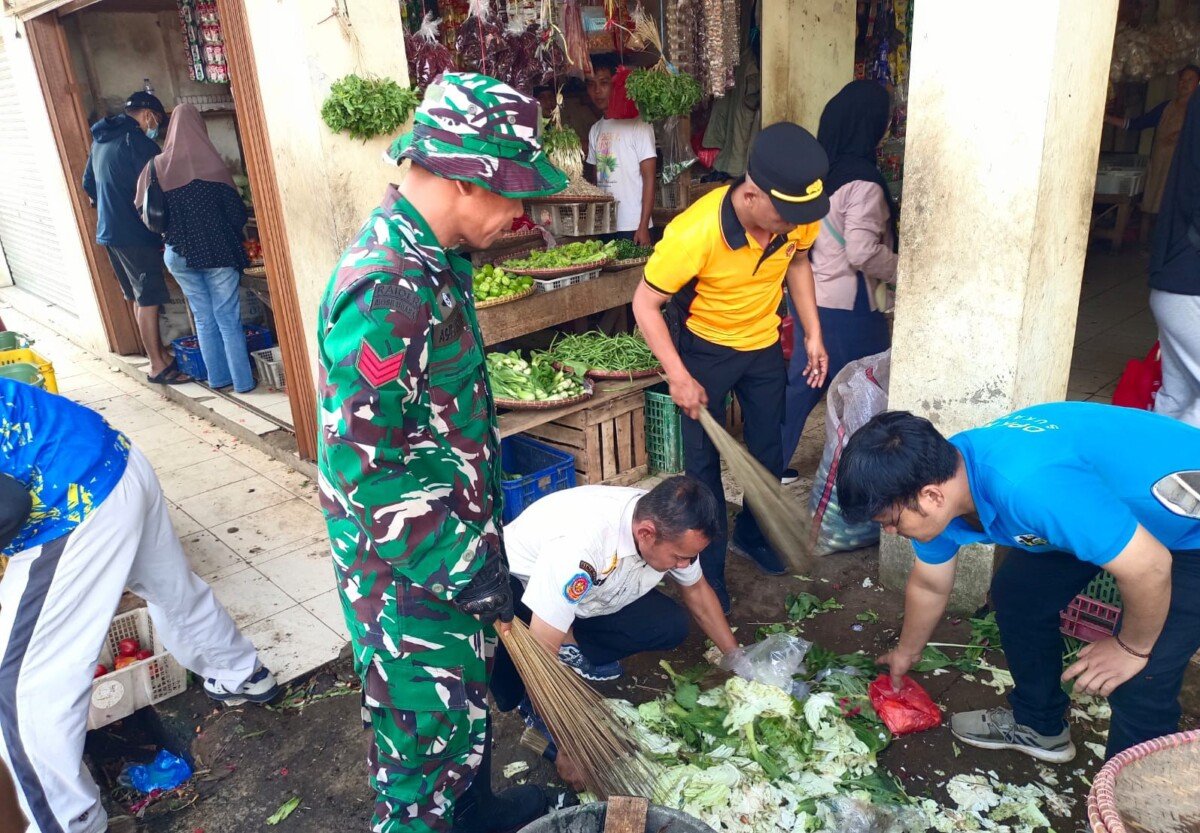 Koramil 0607/Sukaraja Mantapkan Pengabdian Lewat Aksi Bersih Pasar pada Hari Juang ke-80