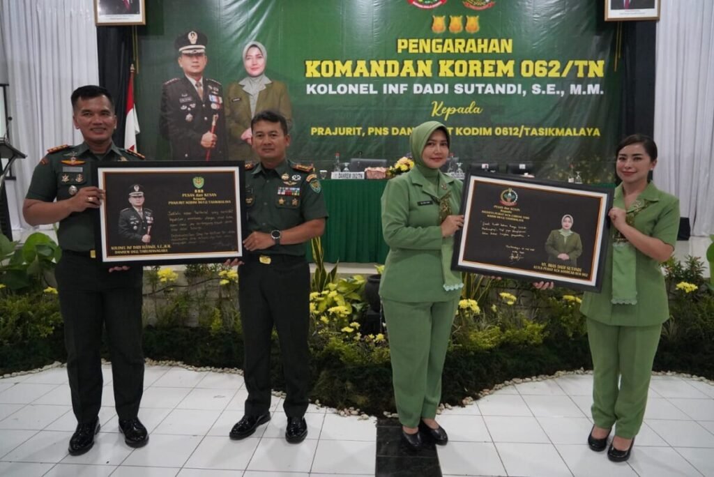 Tasikmalaya || Komandan Korem 062/Tn Kolonel Inf Dadi Sutandi, S.E., M.M., bersama Ketua Persit KCK Koorcab Rem 062 PD III/Siliwangi, Ny. Imas Dadi Sutandi, melaksanakan Kunjungan Kerja ke Kodim 0612/Tasikmalaya di Jl. Otto Iskandardinata No. 2 Kota Tasikmalaya, Senin (10/11/2025).