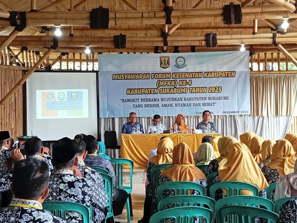 SUKABUMI || Asisten Daerah (Asda) Bidang Pemerintahan dan Kesejahteraan Rakyat (Pemkesra) Setda Kabupaten Sukabumi, Boyke Martadinata, secara resmi membuka Musyawarah Forum Kesehatan Kabupaten (MFKK) Ke-4 Kabupaten Sukabumi Tahun 2025, yang digelar di ETC Sultan Kadudampit, Rabu (17/12/2025).