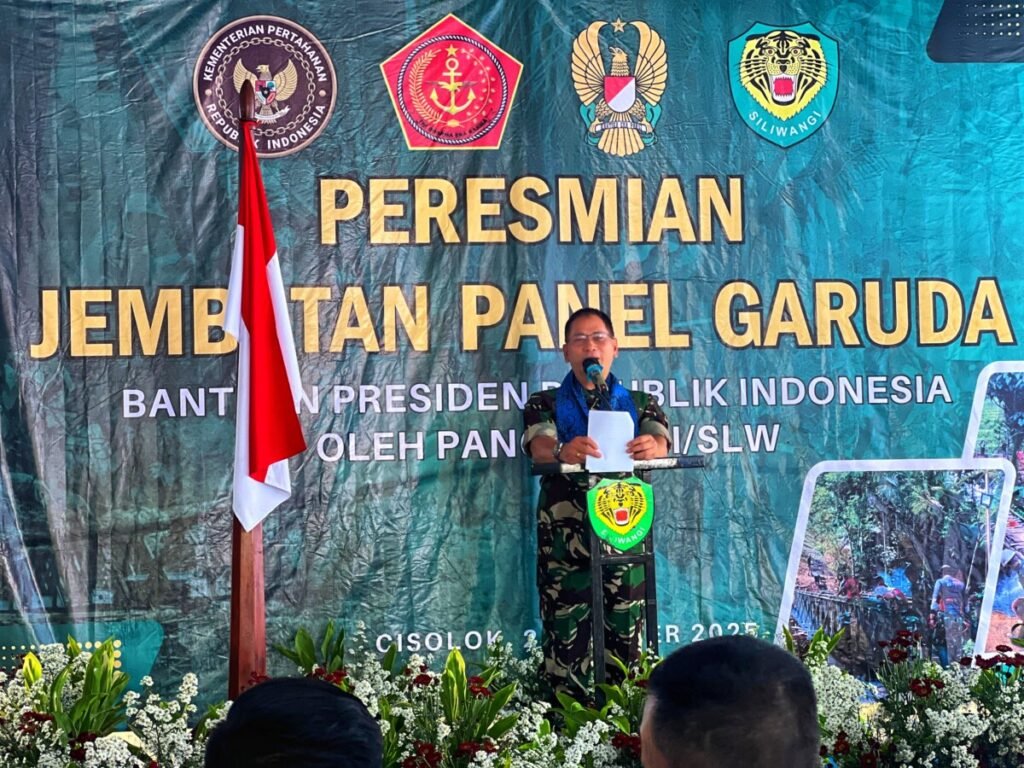 Jembatan Panel Garuda itu secara resmi dibuka oleh Pangdam III/Siliwangi, Meyjen TNI, Kosasih. Jembatan itu pun langsung digunakan masyarakat, Kamis (2/10/2025).