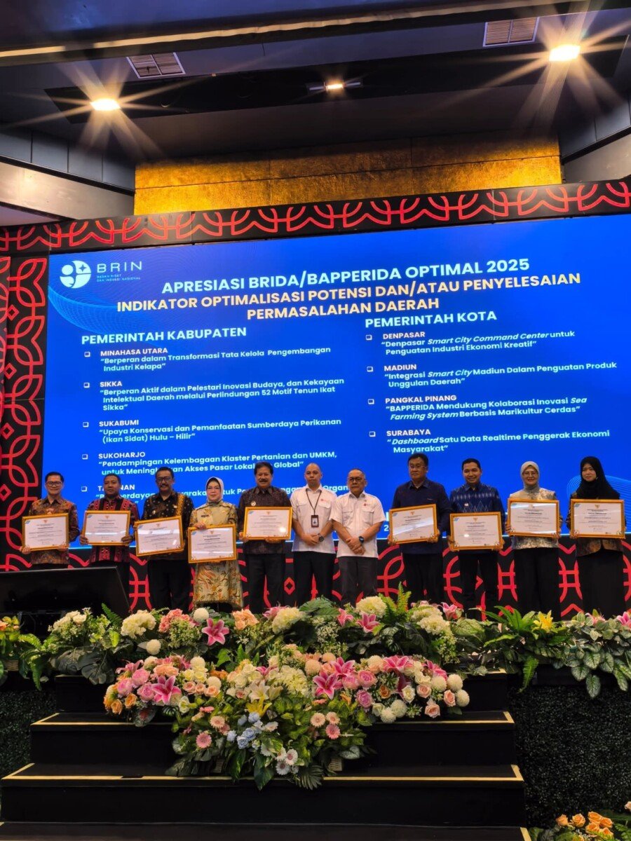 Kabupaten Sukabumi menjadi salah satu dari 20 kabupaten yang meraih penghargaan untuk indikator “Peran BRIDA dalam Optimalisasi Potensi dan/atau Penyelesaian Permasalahan Daerah”. Capaian ini menunjukkan komitmen Pemerintah Kabupaten Sukabumi dalam memperkuat ekosistem riset dan inovasi daerah, serta menjadikan hasil kajian ilmiah sebagai dasar pengambilan kebijakan pembangunan yang berbasis bukti (evidence-based policy).