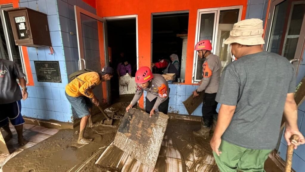 PORTALBELANEGARA – Tim SAR Batalyon B Pelopor Satbrimob Polda Jabar bergerak cepat melaksanakan kegiatan evakuasi dan pembersihan pasca bencana banjir bandang yang melanda wilayah Kecamatan Cisolok, Kabupaten Sukabumi, Selasa (28/10/2025).